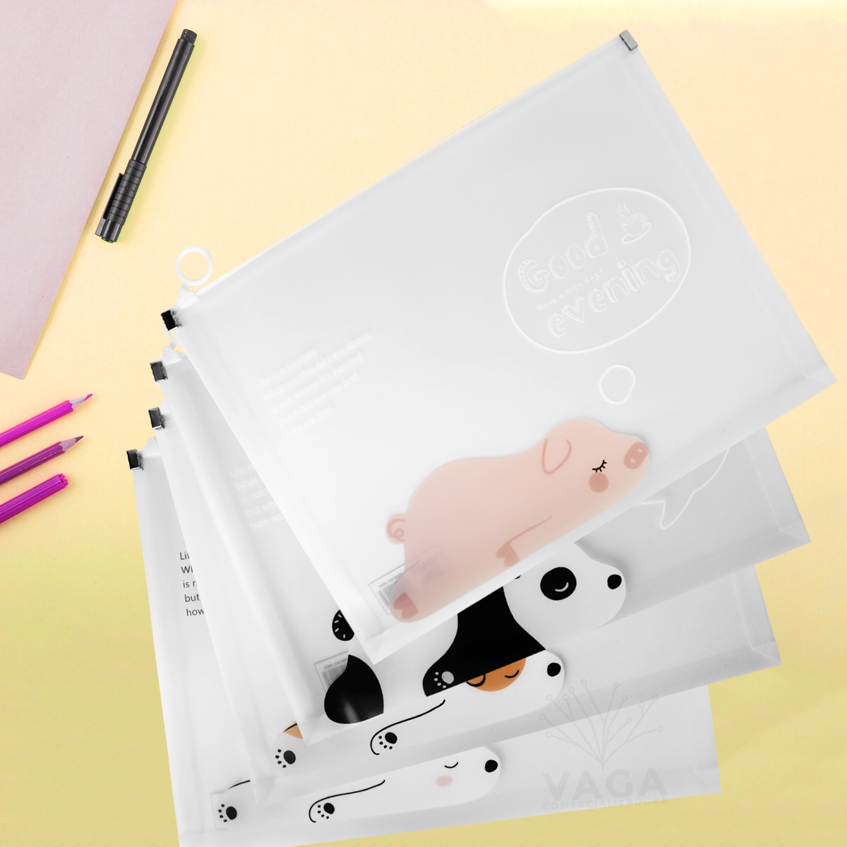 Folder tamaño carta de plastico con diseño variados Medidas: 25 x 33 Con cierre hermético