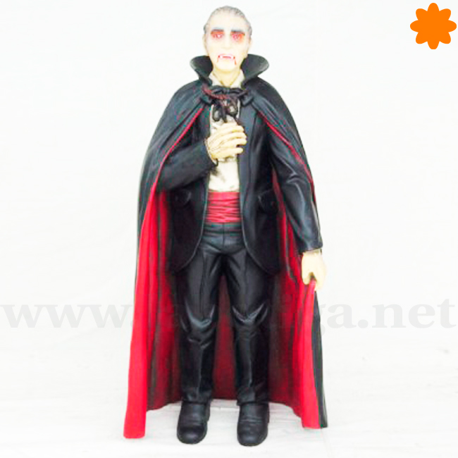 Este producto és una gran figura fabricada con resina de poliéster. Este modelo tiene unas medidas de 190 centímetros de altura por 80 centímetros de ancho y 70 centímetros de amplio. Esta figura esta dedicada al vampiro más famoso del mundo, Drácula!. Esta réplica esta decorada con unas tonalidades negras, rojas, blancas y azules. Esta reproducción de gran tamaño esta fabricada para exponer en el exterior y soportar las inclemencias meteorológicas. Recuerda que en este catálogo encontrarás todas las figuras de tamaño real.