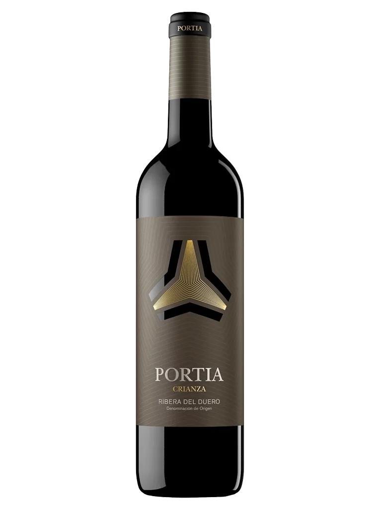Portia Crianza es un vino tinto monovarietal de Tinta del País (Tempranillo) elaborado por Bodegas Portia, perteneciente al Grupo Faustino, en la D.O. Ribera del Duero. Procedente de viñedos situados en Roa, Gumiel de Mercado, Sotillo de la Ribera y Villanueva de Gumiel, este vino refleja la riqueza de los suelos arenoso-arcillosos con estratos calizos y el clima mediterráneo continental de la región. Tras una fermentación en depósitos de acero inoxidable, el vino envejece durante 13 meses en barricas de roble: 10 meses en roble francés y 3 meses en roble americano, logrando así una armonía entre la fruta y las notas de la crianza.