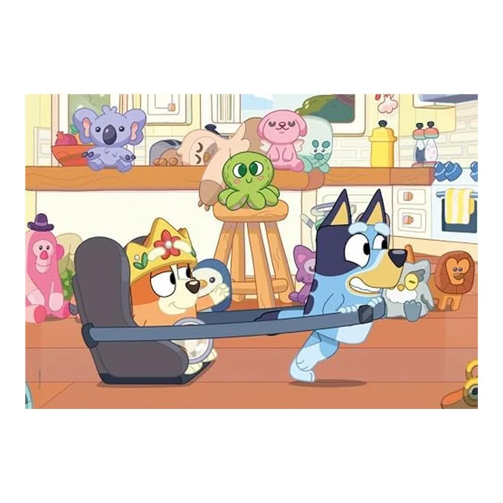 El set incluye dos puzzles de 60 piezas cada uno, con imágenes encantadoras protagonizadas por Bluey, su familia y amigos: